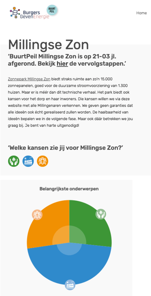 Ieder BuurtPeil-traject is maatwerk. De inrichting van het platform hangt af van de vraagstelling en de wensen van de klant. Hieronder vindt u een aantal voorbeelden.