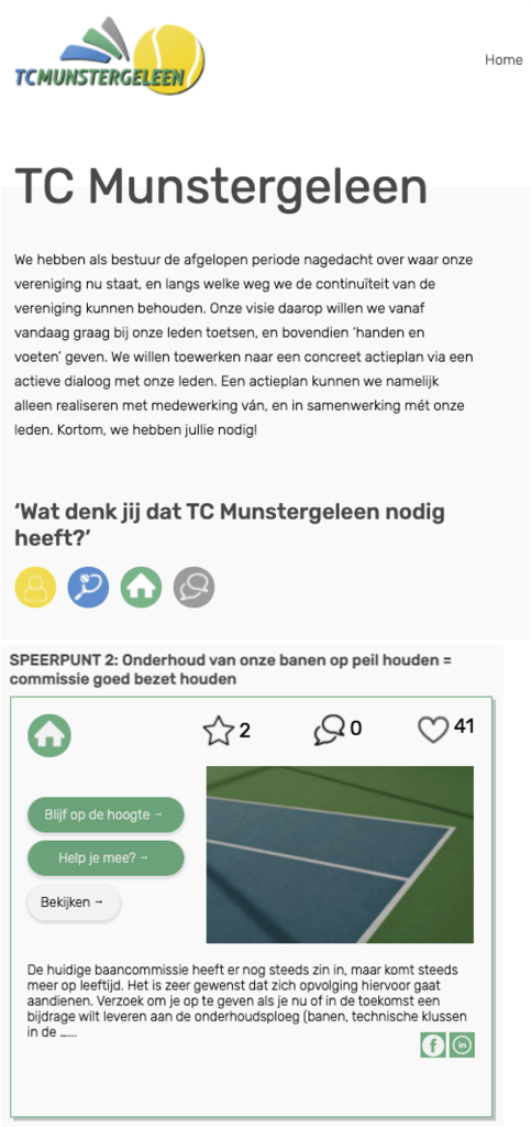 Voor iedere sportvereniging wordt een eigen unieke ClubPeil-website ingericht, waarop ieder lid kan inloggen. Tennisclub Munstergeleen is daarvan een mooi voorbeeld.